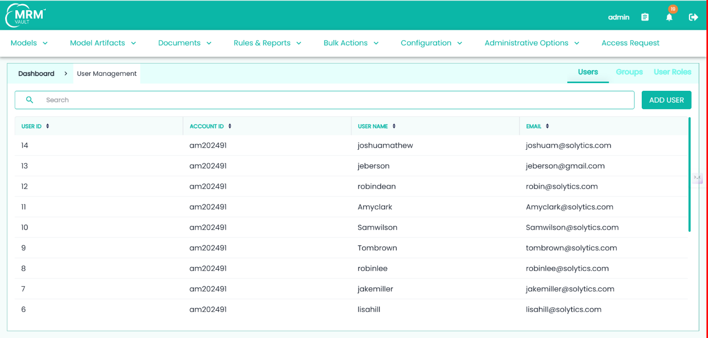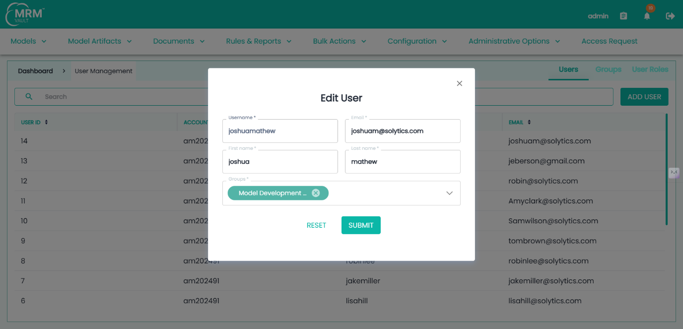 User Creation enables an admin or user with appropriate access to add users in MRM Vault, by adding user details like username, email id, password etc. and assigning users appropriate groups. If SSO is enabled, this process is done automatically.